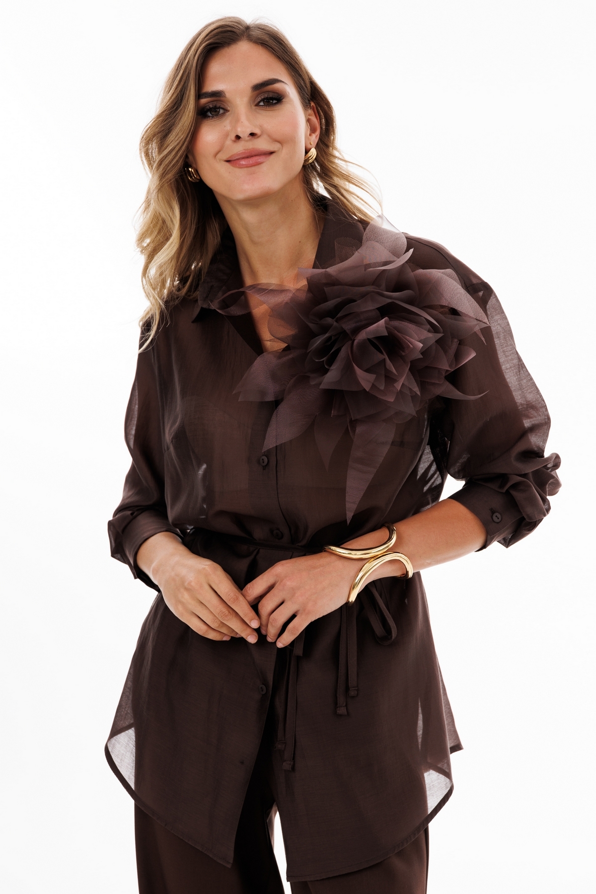 Брошь «Цветок» ручной работы выполнена из органзы и фатина. Все элементы украшения обработаны лазером, что предотвращает осыпание. Застежка металлическая (брошкодержатель).