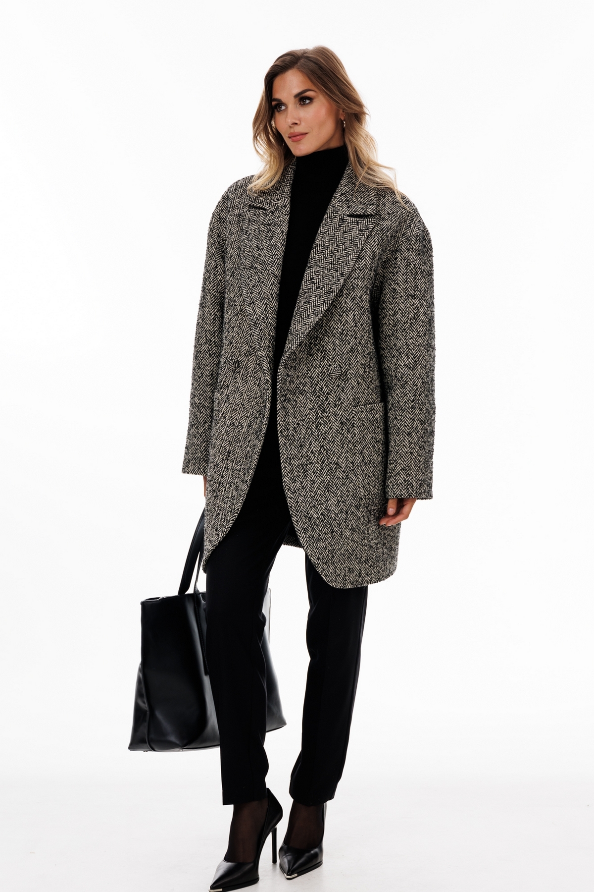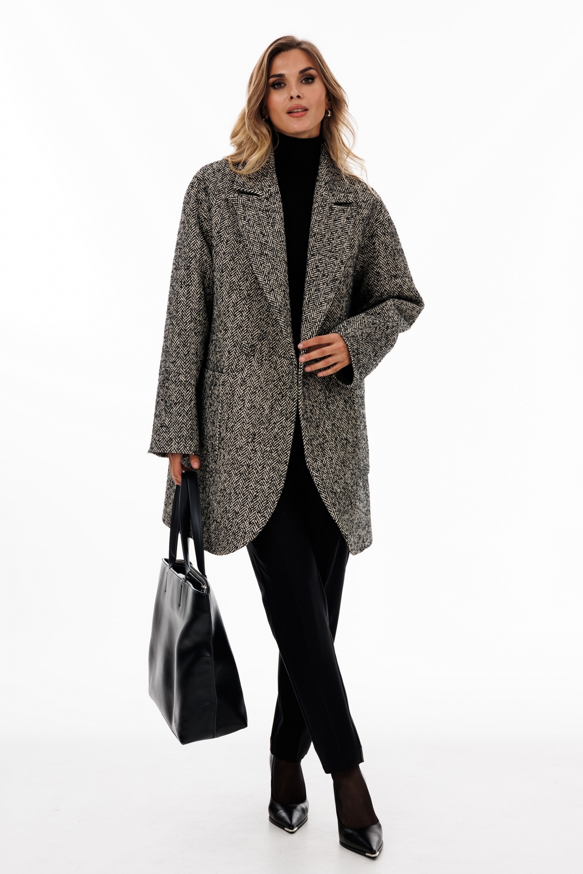 Брюки выполнены из костюмной ткани. Брюки зауженные к низу, длиной 7/8, на притачном поясе. Спереди боковые карманы с наклонным входом и застежка на молнию. Сзади декоративные карманы с листочкой.