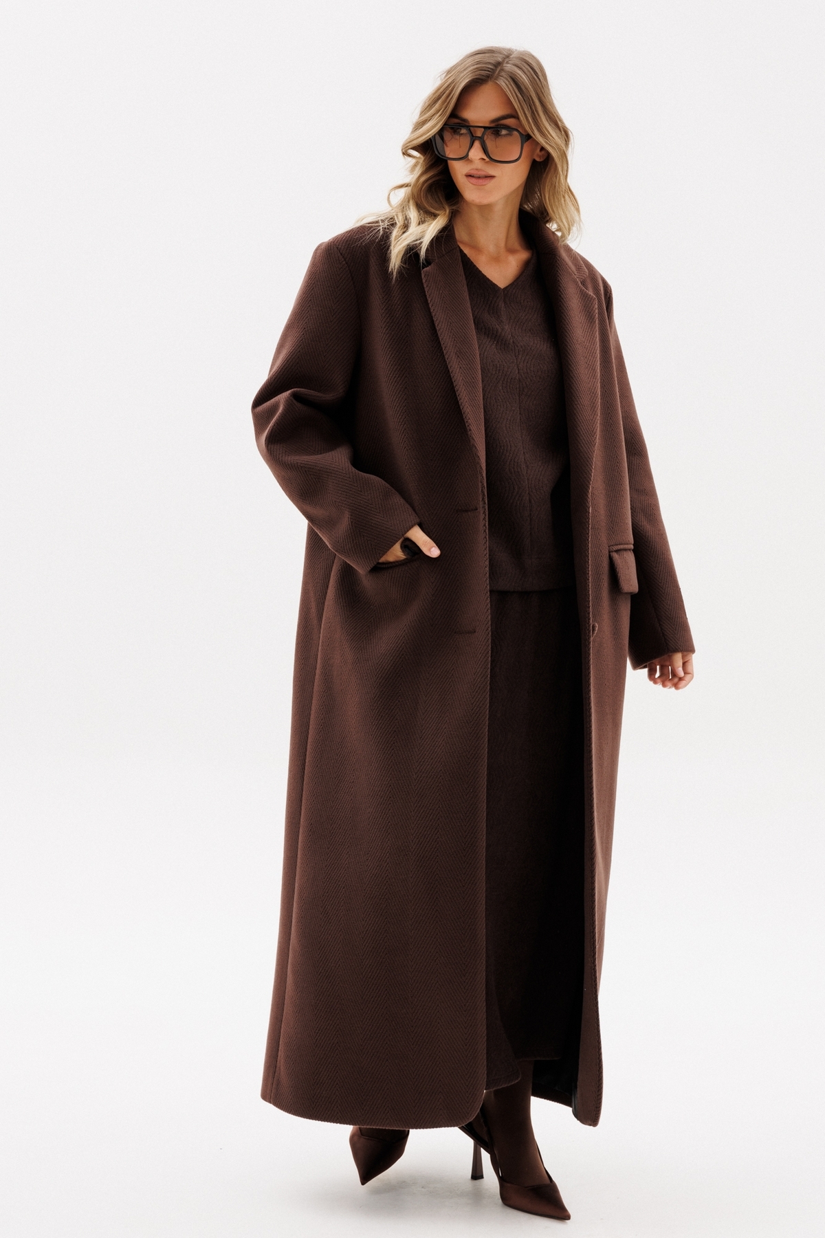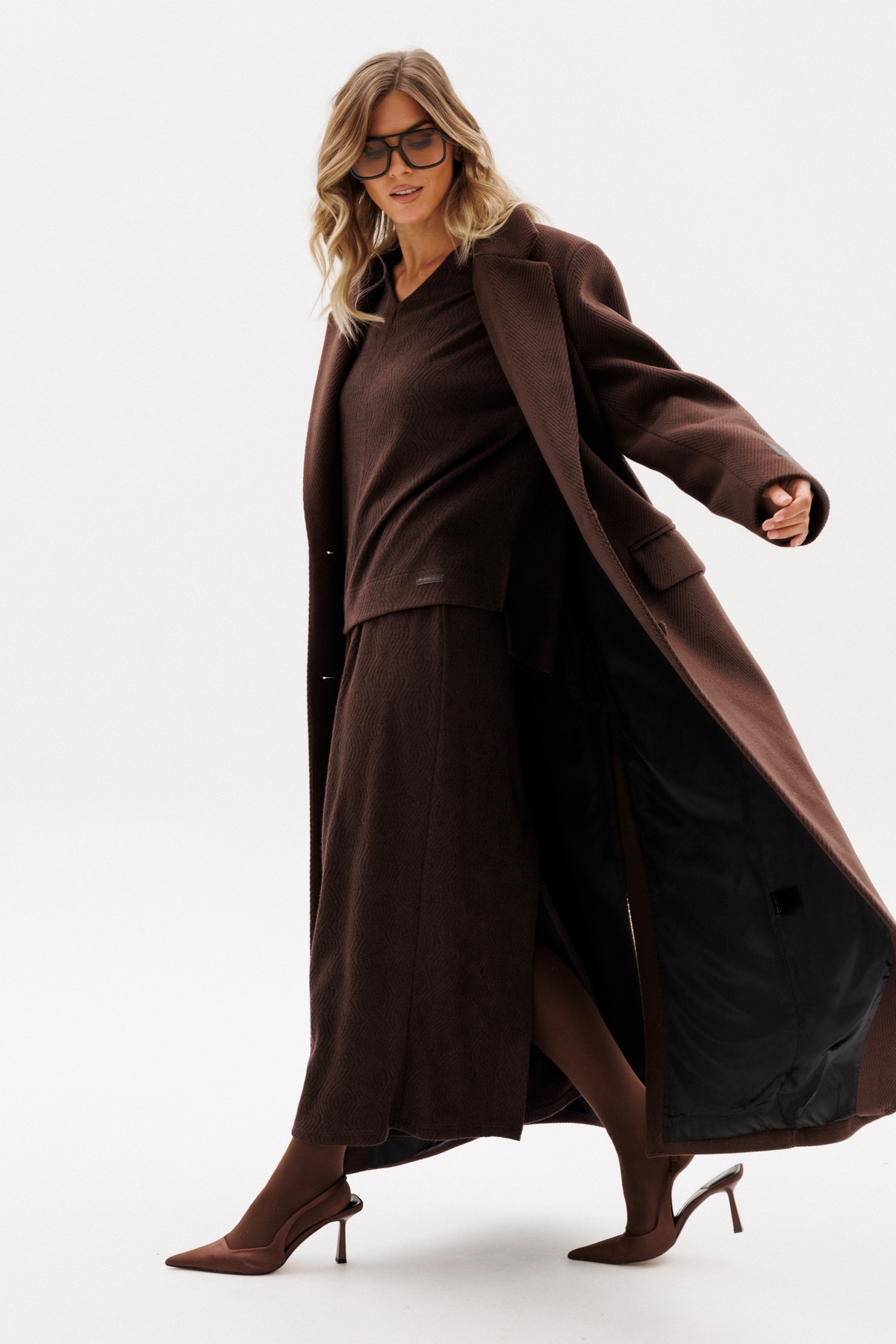 Длина пальто: р. 42-46 - 137 см, р. 48-52 - 138,5 см. Длина рукава: р. 42-46 - 61 см, р. 48-52 - 62 см.