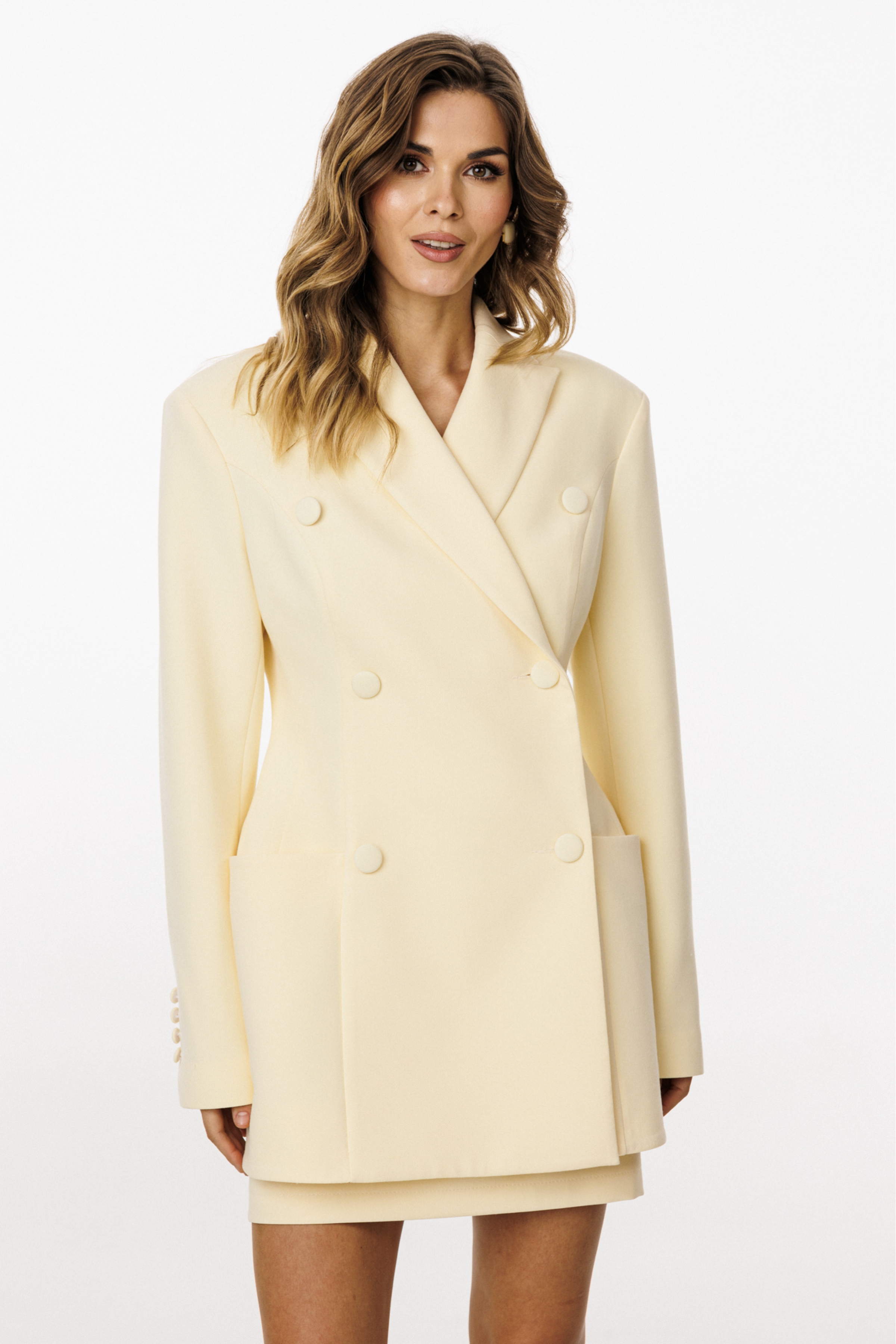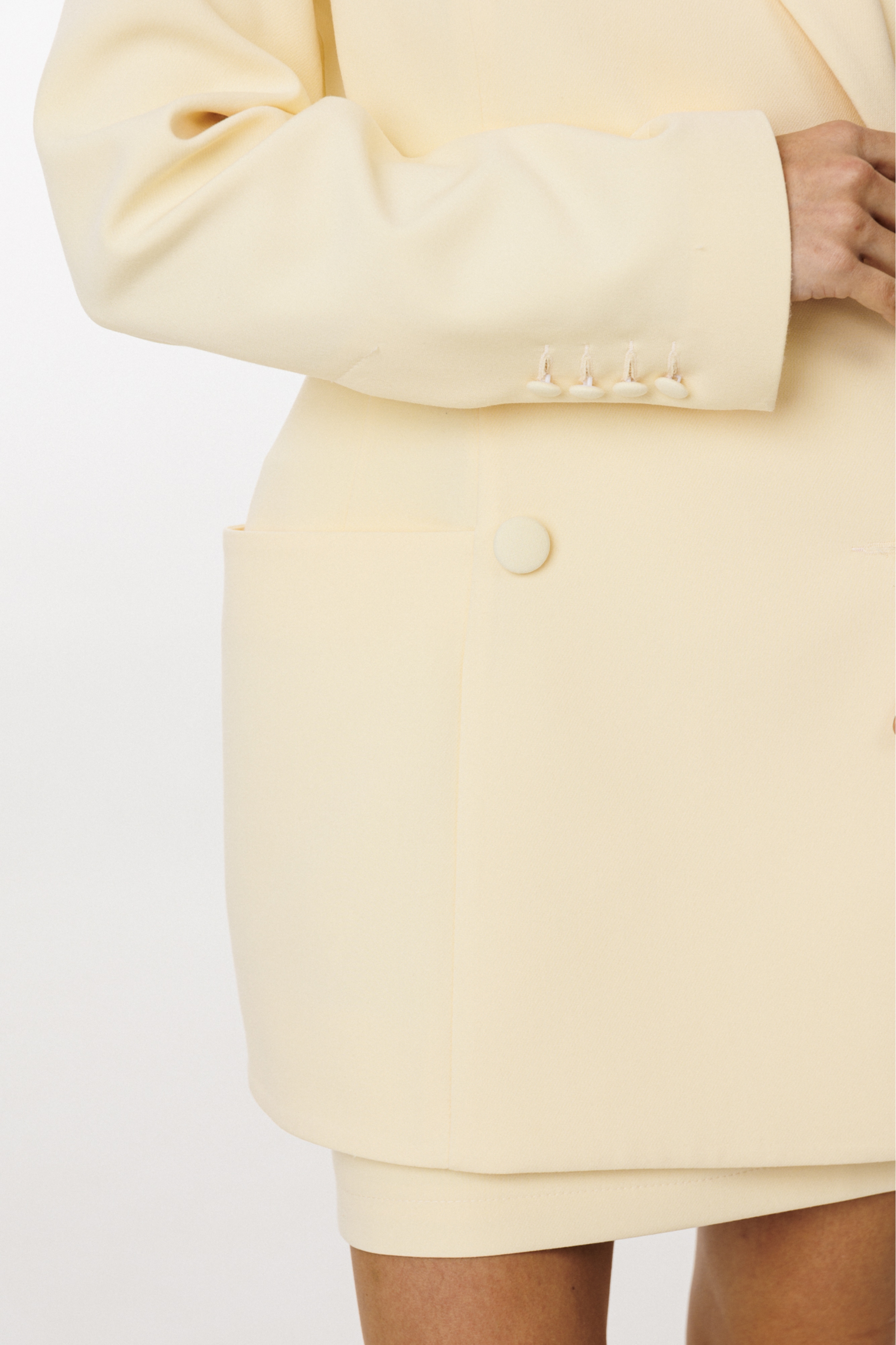 Юбка выполнена из костюмной ткани. Юбка прямого силуэта, длиной выше колена. Юбка на притачном поясе, на переднем полотнище обработаны две пары талиевых вытачек и средний шов с застежкой на потайную молнию. Пояс с застёжкой на петлю и пуговицу. Юбка на отлетной по низу подкладке.