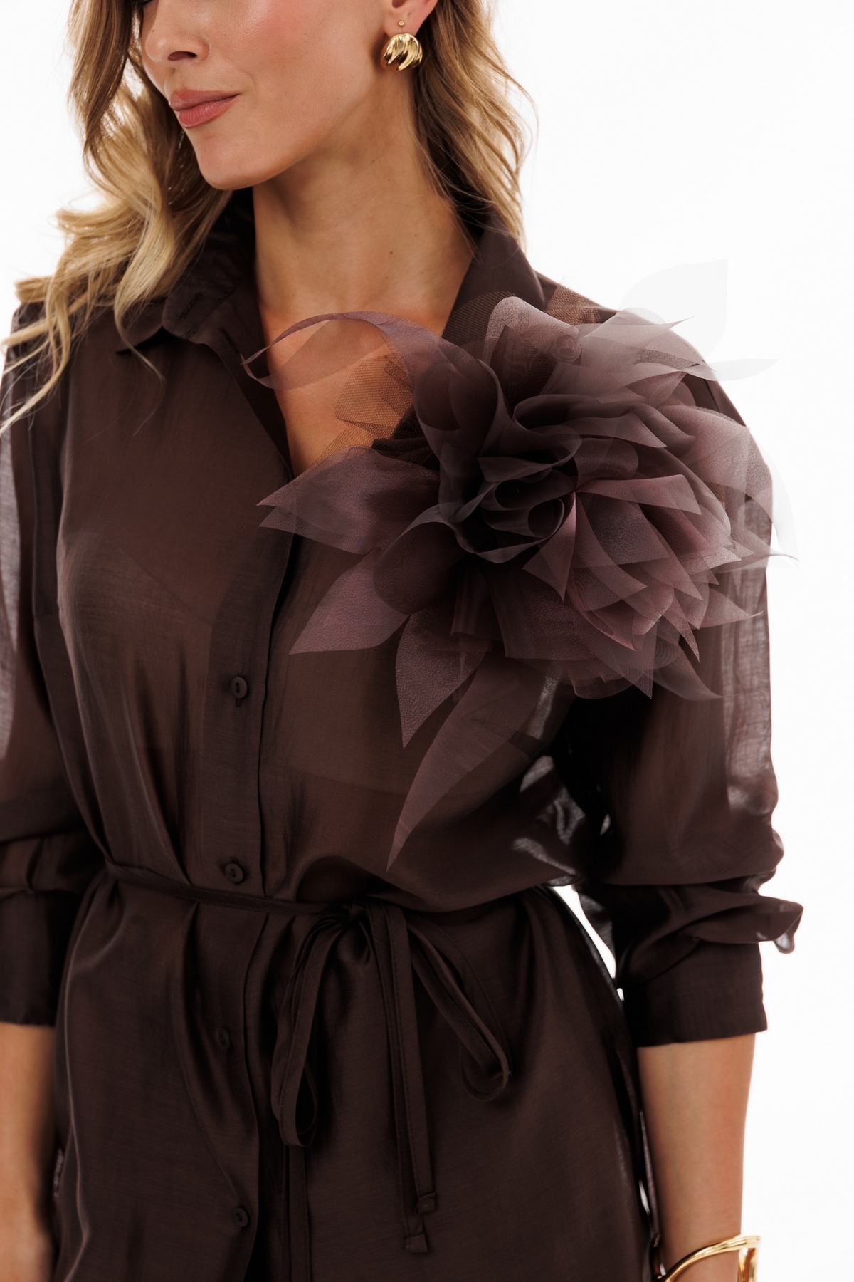 Брошь «Цветок» ручной работы выполнена из органзы и фатина. Все элементы украшения обработаны лазером, что предотвращает осыпание. Застежка металлическая (брошкодержатель).