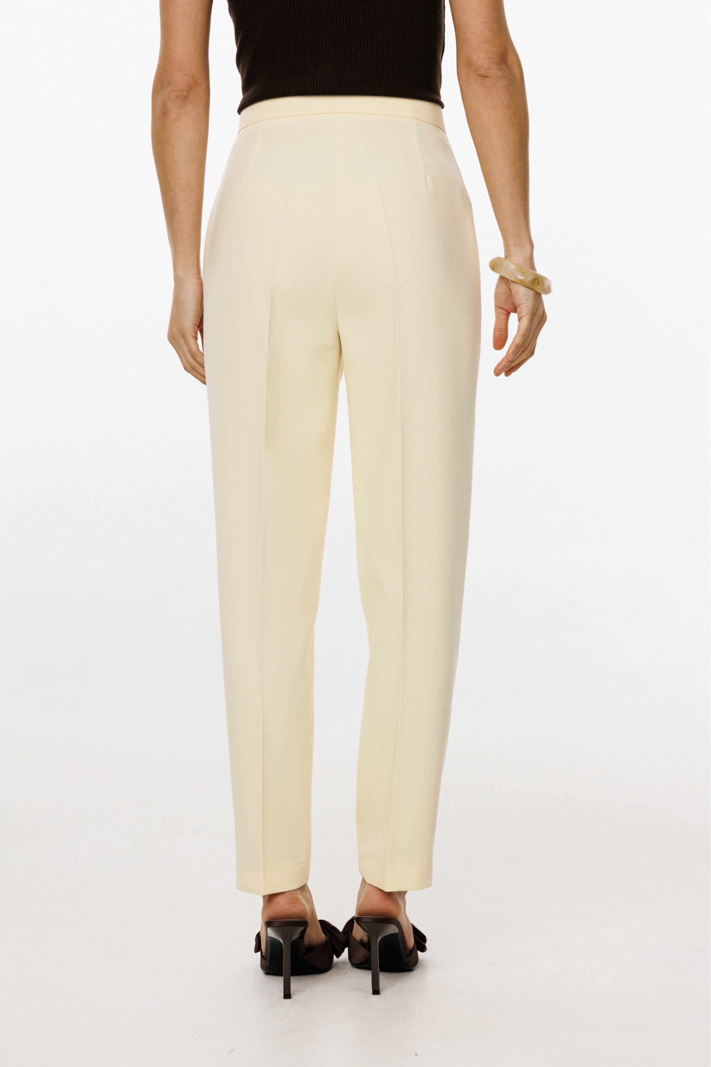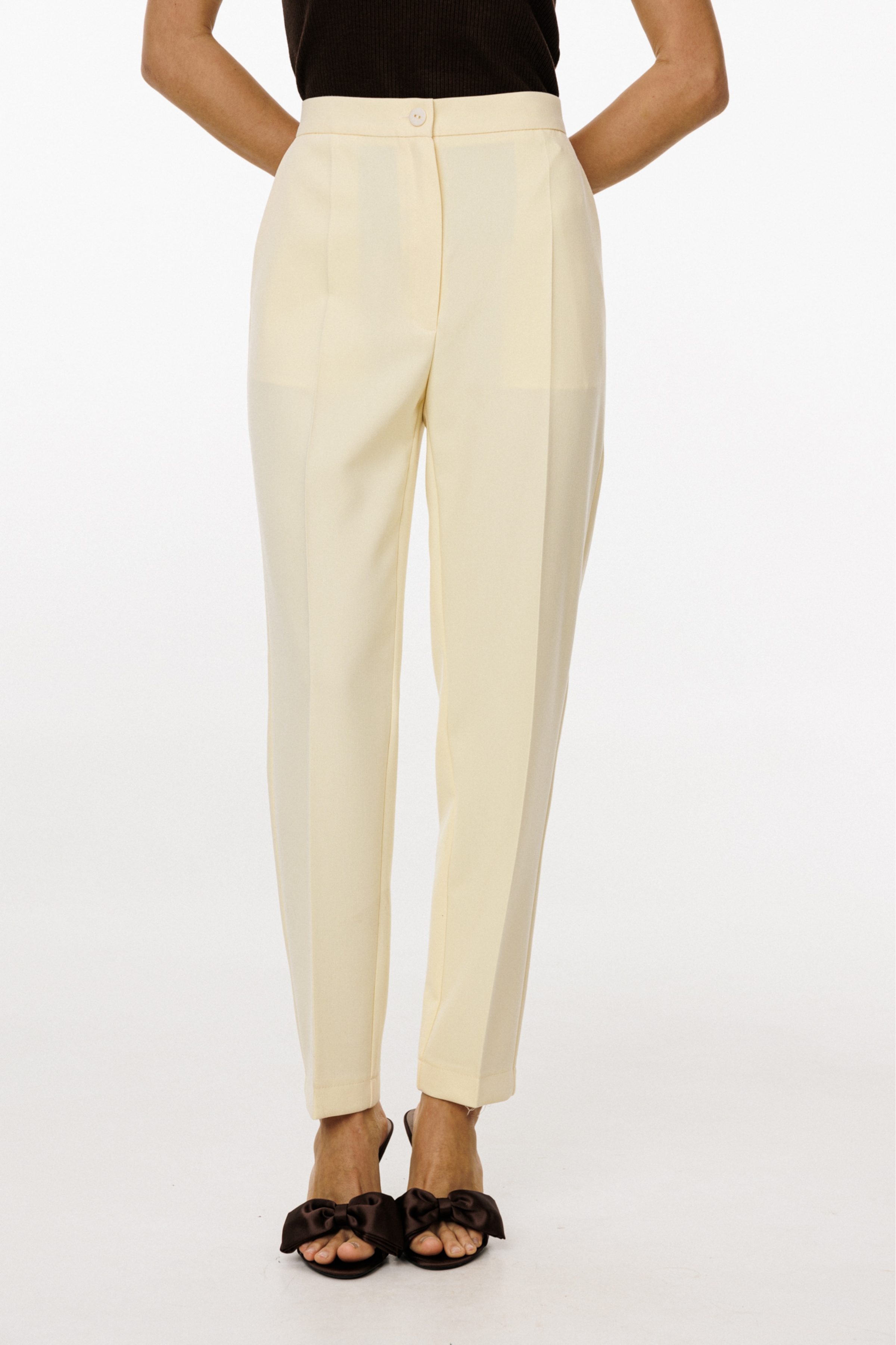 Передние и задние части брюк заутюжены на кант.